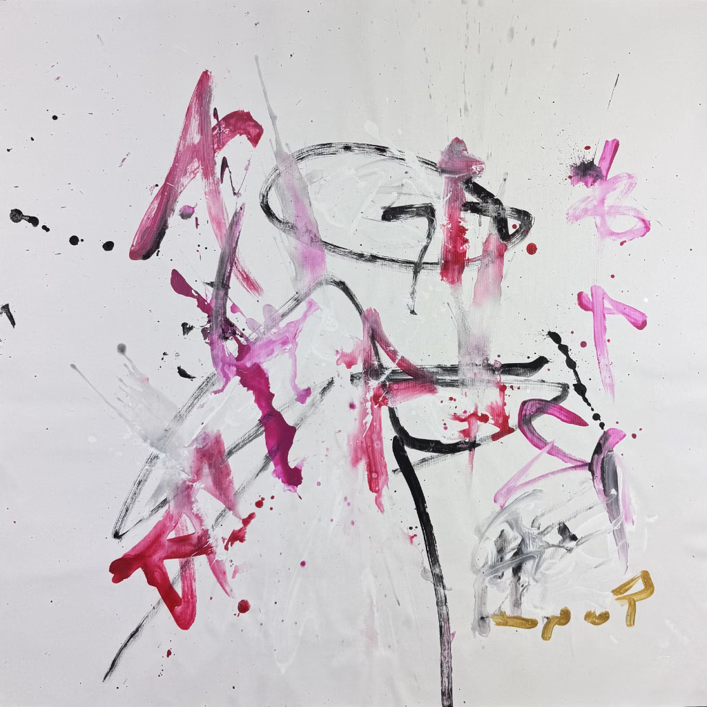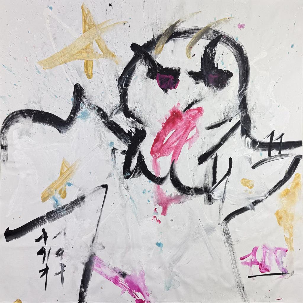 All works are acrylic on canvas with golden leafts, measuring 100x100 centimeters.